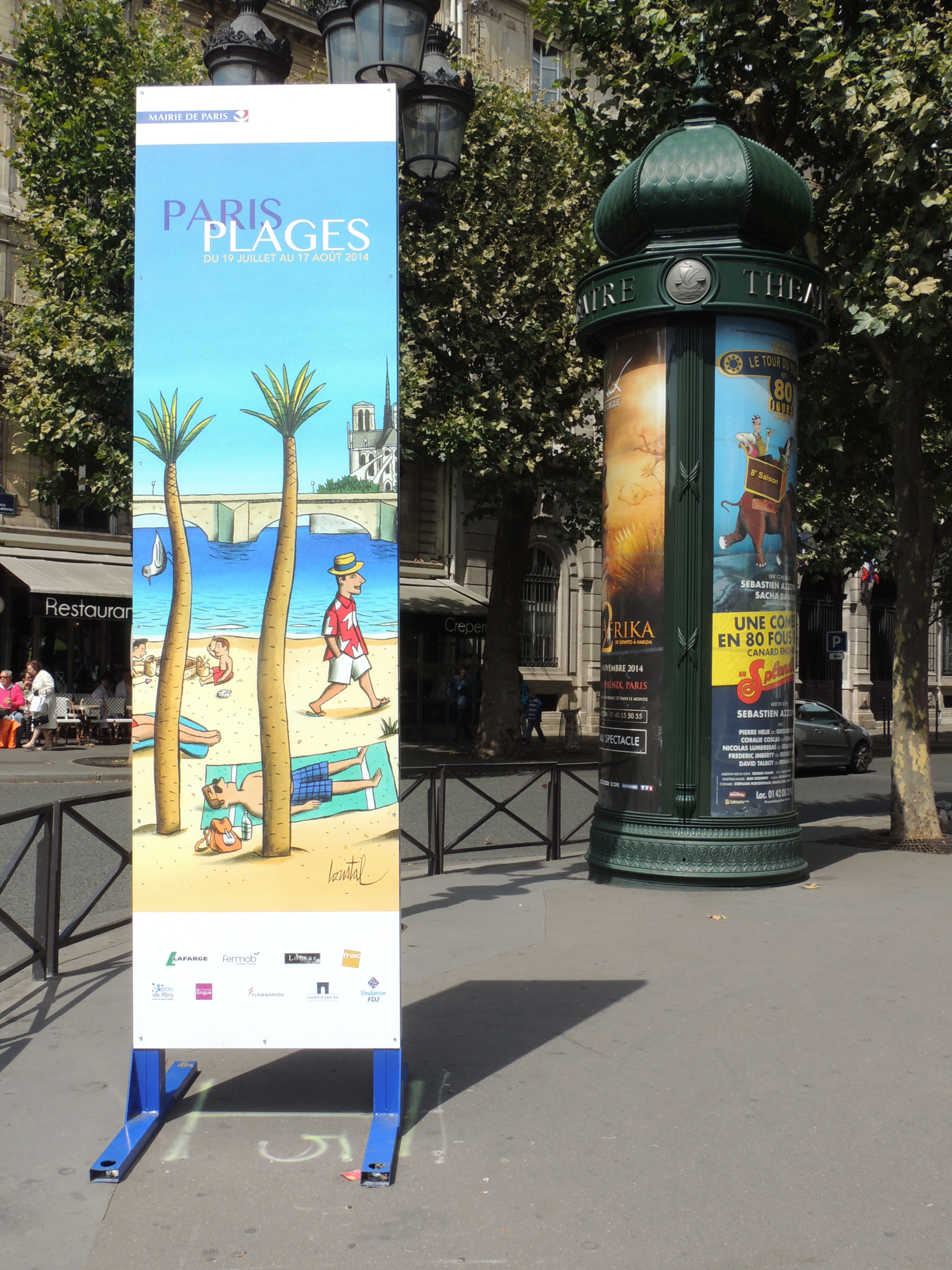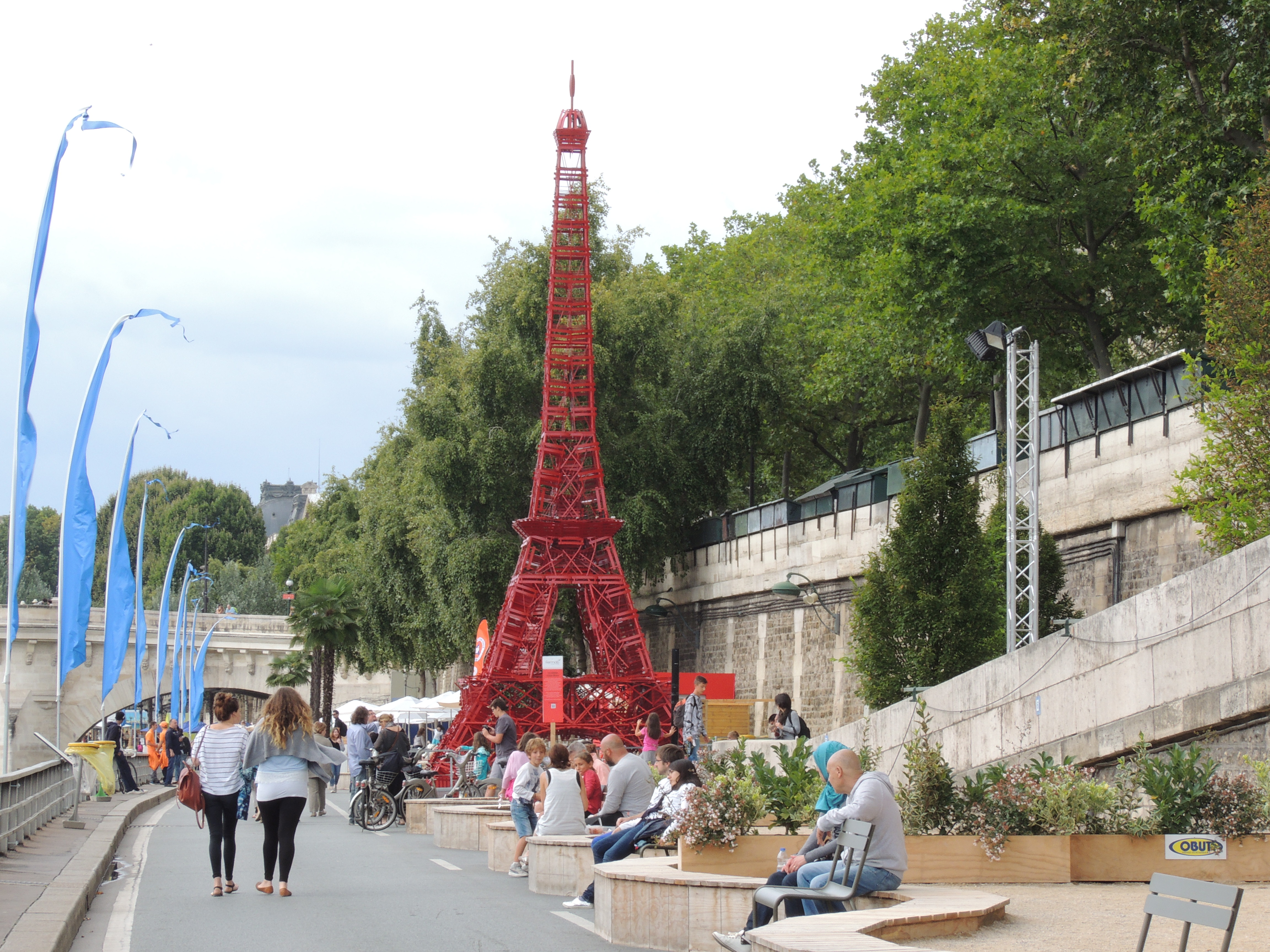 Après un rapide coup d’œil aux terrains de beach-volley qui ont remplacé les écrans géants du Mondial, notre ballade se poursuit sur la Voie Georges-Pompidou, afin de découvrir le sable (signé Lafarge) de Paris Plages et les activités proposées au public : un coin lecture, une boutique Paris Rendez-Vous, un boulodrome, des buvettes, les transats pour la détente et… la tour Eiffel.