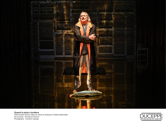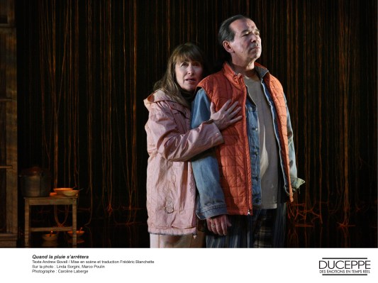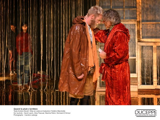 C’est dans une atmosphère lugubre de fin du monde, avec des pluies perpétuelles et des inondations – sujet qui, étrangement, ne saurait être plus d’actualité – que s’ouvre la nouvelle saison de Duceppe. Quand la pluie s’arrêtera, d’Andrew Bovell, est une pièce dramatique et poignante. Des pans de vie entremêlés de quatre générations d’une même famille, sur deux continents, nous y sont révélés. Et les personnages de la pièce vivent drame après drame.