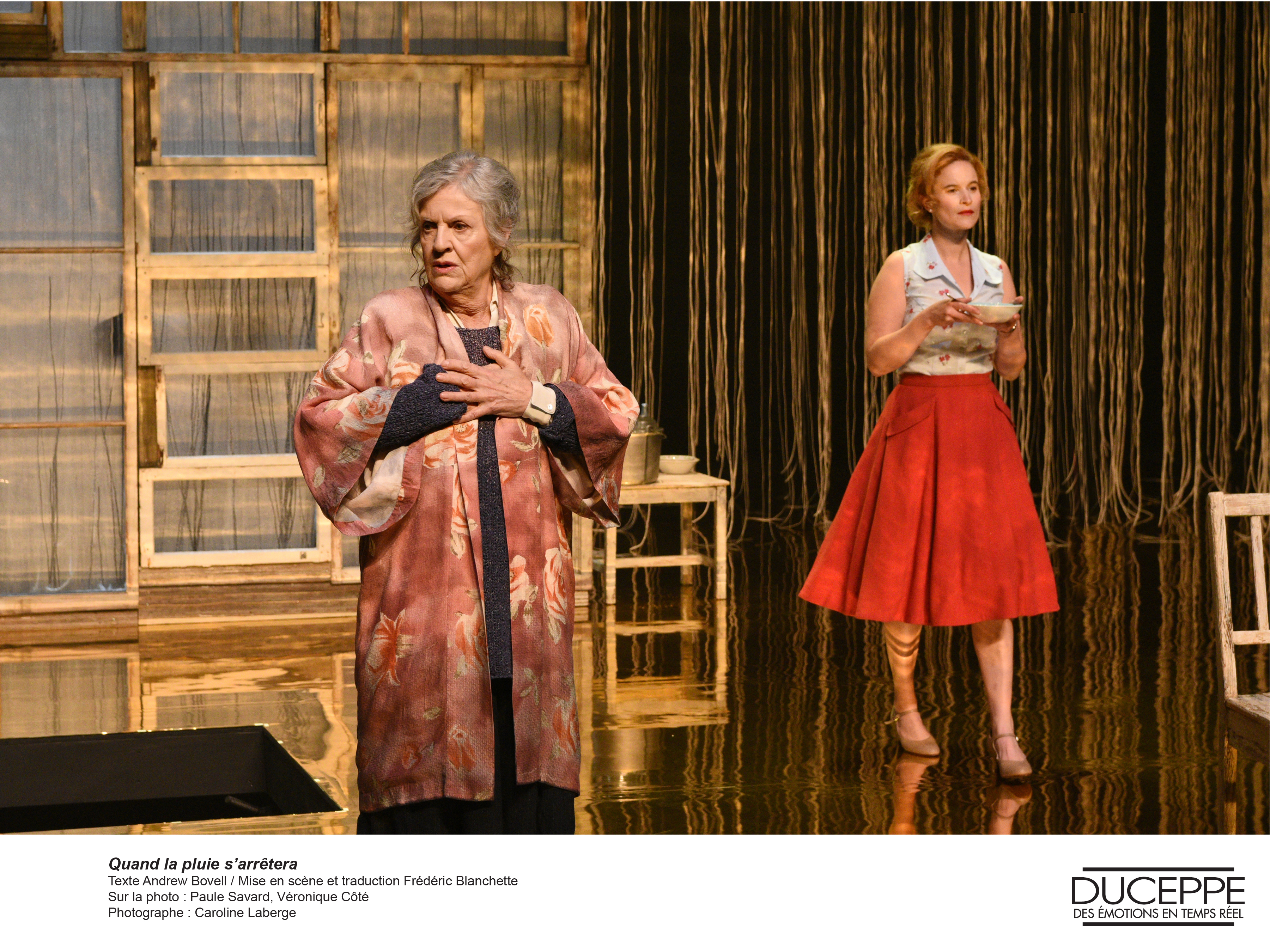 C’est dans une atmosphère lugubre de fin du monde, avec des pluies perpétuelles et des inondations – sujet qui, étrangement, ne saurait être plus d’actualité – que s’ouvre la nouvelle saison de Duceppe. Quand la pluie s’arrêtera, d’Andrew Bovell, est une pièce dramatique et poignante. Des pans de vie entremêlés de quatre générations d’une même famille, sur deux continents, nous y sont révélés. Et les personnages de la pièce vivent drame après drame.