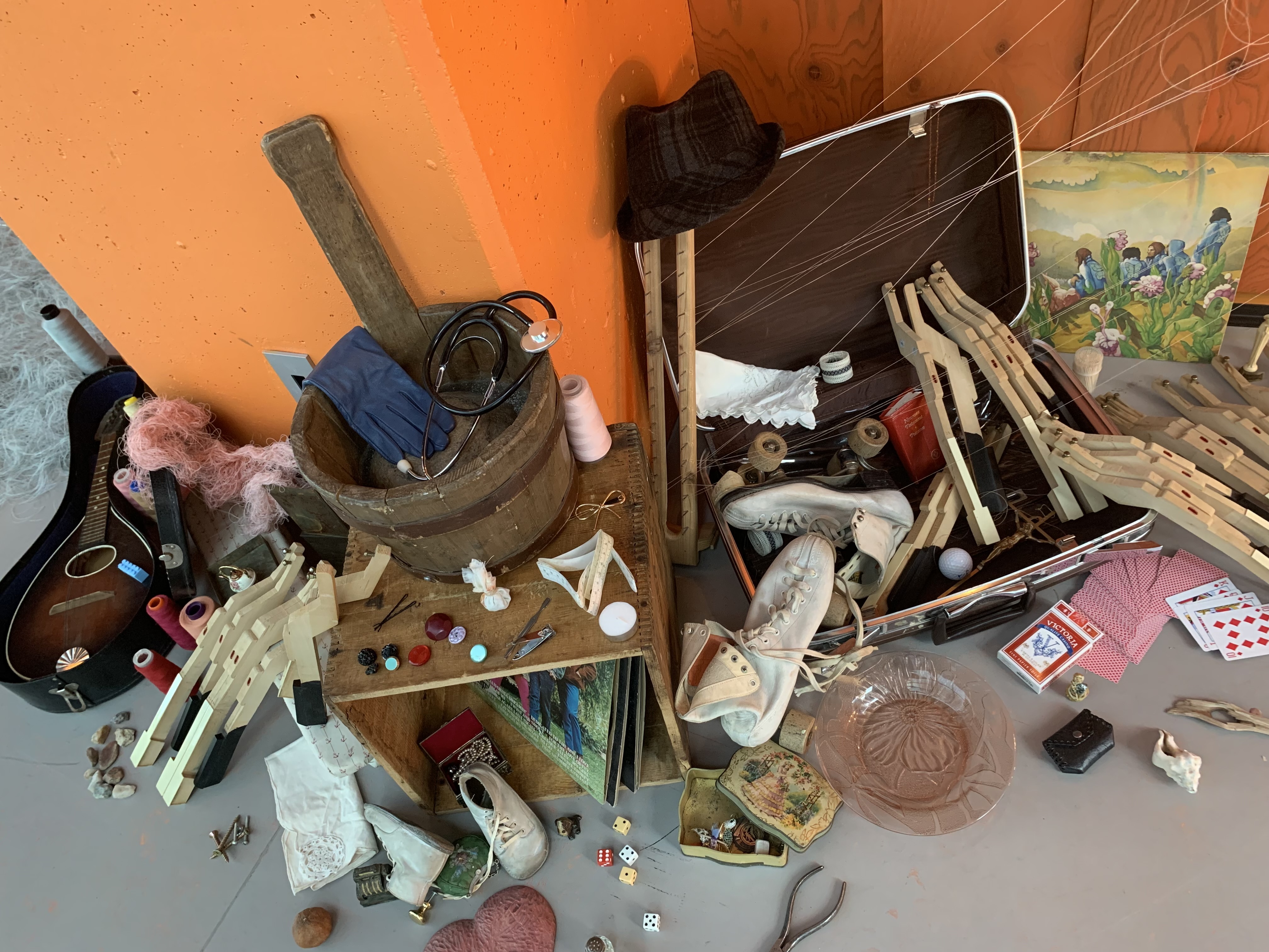Lors de ses ateliers créatifs donnés en CHSLD, l’artiste visuelle propose aux résidents et à leurs proches aidants de fabriquer de petites maisons à souvenirs, remplies de fragments de leur histoire personnelle. Avec ce projet intitulé La Maison que j’habite, moi, elle aide les aînés, souvent isolés, déracinés, encore davantage pendant la pandémie de COVID-19, à prendre conscience que leur maison est avant tout à l’intérieur d’eux-mêmes et qu’il est toujours possible de s’y réfugier. Dans l’exposition présentée en accompagnement aux Jeux du crépuscule d’Ariane Boulet, Marie-Hélène Bellavance propose au public les créations des personnes âgées avec qui elle a travaillé, mais aussi ses propres peintures et installations, délicates et précieuses, qui reprennent les thèmes qui l’inspirent depuis ses débuts, soit la vie, la mort, la transformation et la résilience.