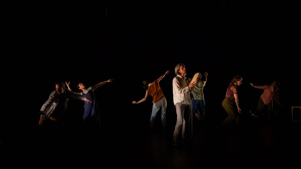 Pour accompagner les mouvements fascinants des danseurs, la voix et les mélodies sublimes de Marie Vallée, qui signe la direction musicale, la composition et l’interprétation de la bande sonore des Jeux du crépuscule. La performance de l’artiste sur et aux abords de la scène, plutôt que l’utilisation de pistes préenregistrées, ajoute à l’ensemble une intensité captivante.